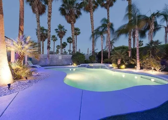 Palm Springs airport can be reached within 10 minutes drive, and natural attractions like Panorama Park are 850 metres away. The nearby cultural attractions include Fountain of Life, which is 6 km away. This 2-bedroom villa offers sports enthusiasts to discover Palm Springs Stadium, located 7 km away.